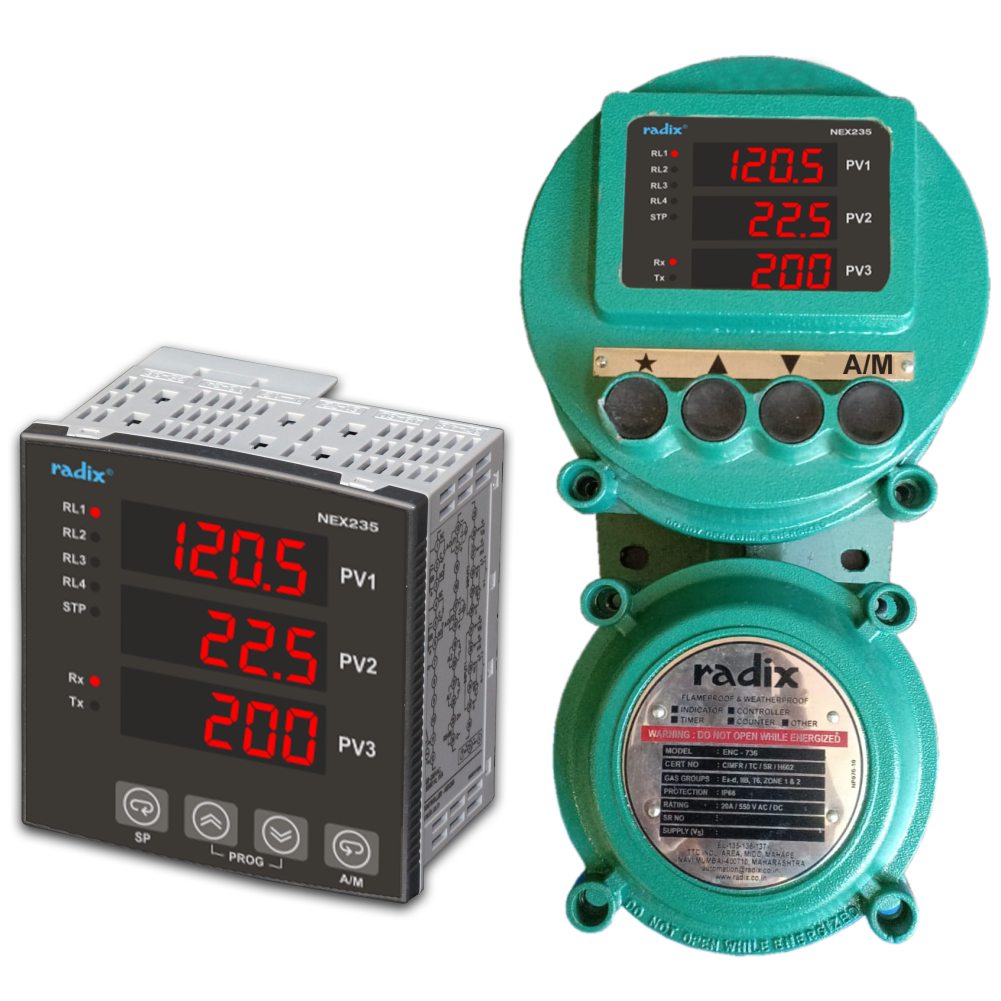 NEX235 is a series of AHU controller, PID Controller, Temperature Indicator, On/off Controller, Indicator with alarms and Process controller with RPM indication manufactured by Radix.
